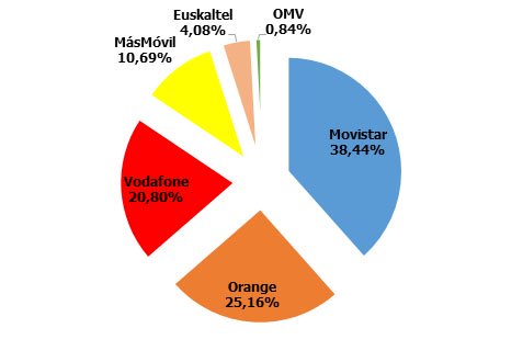 Las cuotas de mercado: sin novedad y repitiendo tendencia: el diferencial entre Vodafone y Orange se reduce cada vez más: 4,4%: