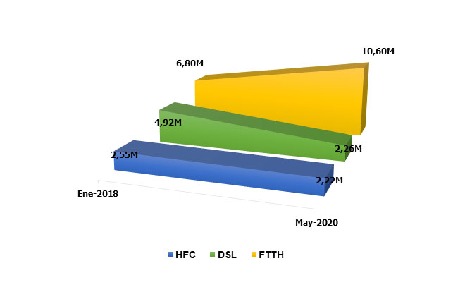 Un mes menos para que el ADSL pierda el segundo puesto ante el cable: