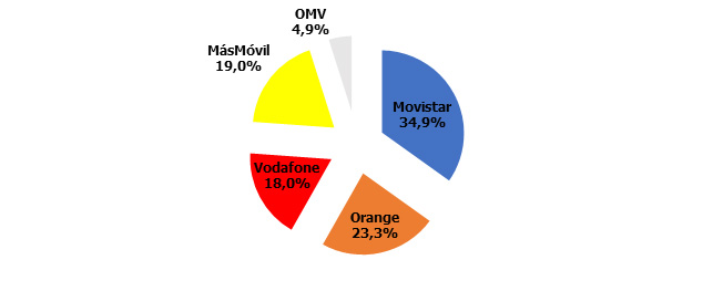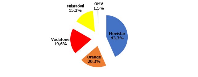 La cuota de mercado de Telefónica sigue bajando, casi en proporciones análogas a las que ganan los amarillos: