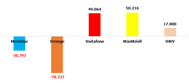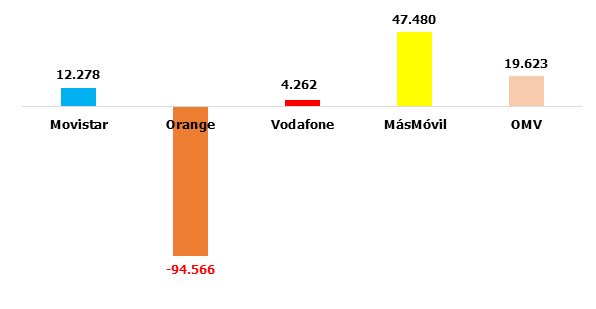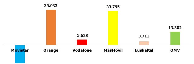 El ganador, en este caso, es Orange, seguida muy de cerca por MásMovil. El resto de operadoras, discretas pero en positivo.
