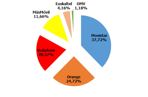 Como consecuencia de ambos meses en negativo, Movistar pierde el 38%. A MásMóvil se le resiste el 12% y la diferencia entre Orange y Vodafone se queda en un 4,1% a favor del primero: