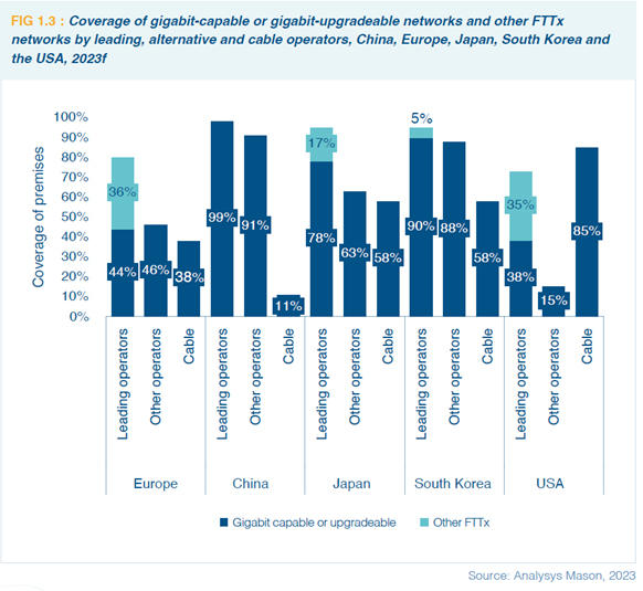 Pasamos a extractar la última publicación de la mayor patronal europea de las telecos, ETNO, una excelente guía visual para comparar el estado de las comunicaciones digitales en el mundo.