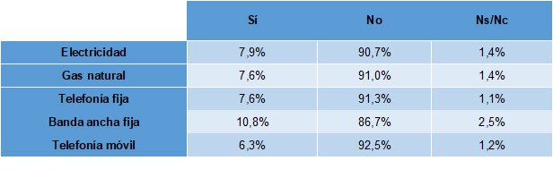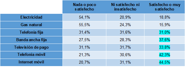 Como en todos los análisis precedentes, la encuesta se centra en la valoración subjetiva que hacen los consumidores sobre servicios tradicionales como energía (electricidad, gas natural) y telecomunicaciones (banda ancha, Internet móvil, telefonía fija y móvil y TV de pago). Estas son, a nuestro entender, las principales conclusiones: