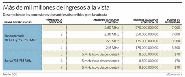 La subasta se configurará por bloques de frecuencias tal y como se expone en el siguiente cuadro elaborado por El Economista7https://www.eleconomista.es/tecnologia/noticias/11244613/05/21/El-Gobierno-publica-las-bases-para-la-subasta-del-5G-que-arrancara-en-julio.html: