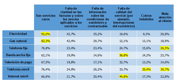 - Se perpetúa la paradoja, semestre tras semestre: los servicios de telecos (telefonía móvil, banda ancha fija y telefonía fija) fueron los que más reclamaciones tuvieron, a pesar de superar en satisfacción a electricidad o al gas natural: