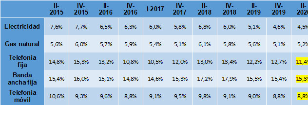 Como en todos los análisis precedentes, la encuesta se centra en la valoración subjetiva que hacen los consumidores sobre servicios tradicionales como energía (electricidad, gas natural) y telecomunicaciones.