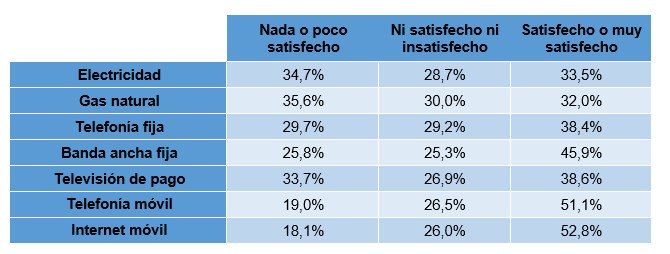 En cualquier caso, el índice de satisfacción con los precios de las telecos es muy superior al de los productos energéticos, salvo la excepción ya citada de la TV de pago: