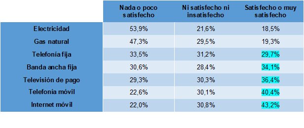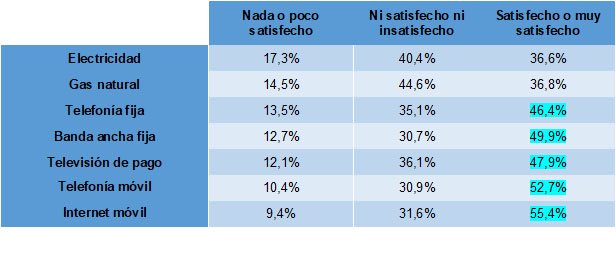 - Por fin la CNMC acierta con el titular (Electricidad y gas natural, los servicios peor valorados por los hogares españoles2https://www.cnmc.es/prensa/panel-de-hogares-satisfaccion-servicios-4t-20220513), dando la razón a nuestros análisis precedentes, cuando afirmábamos (sic): “los servicios de telefonía continúan siendo, de largo, los mejor valorados por los consumidores”. Así, se vuelve a comprobar que las energéticas concentran la menor satisfacción agregada, lo que significa que nuestros servicios telco aglutinan la mayor satisfacción.